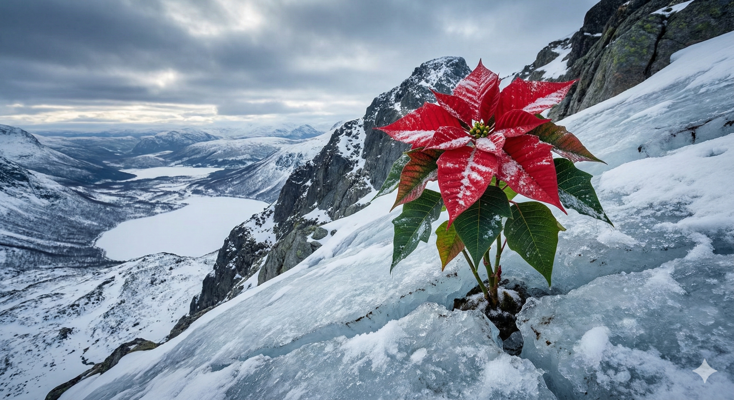Us desitgem un molt Bon Nadal 2025 ple d’aquesta resiliència i bellesa botànica tal com ens ensenya l’esplèndida (i inversemblant-IA-glacial) flor de Nadal.